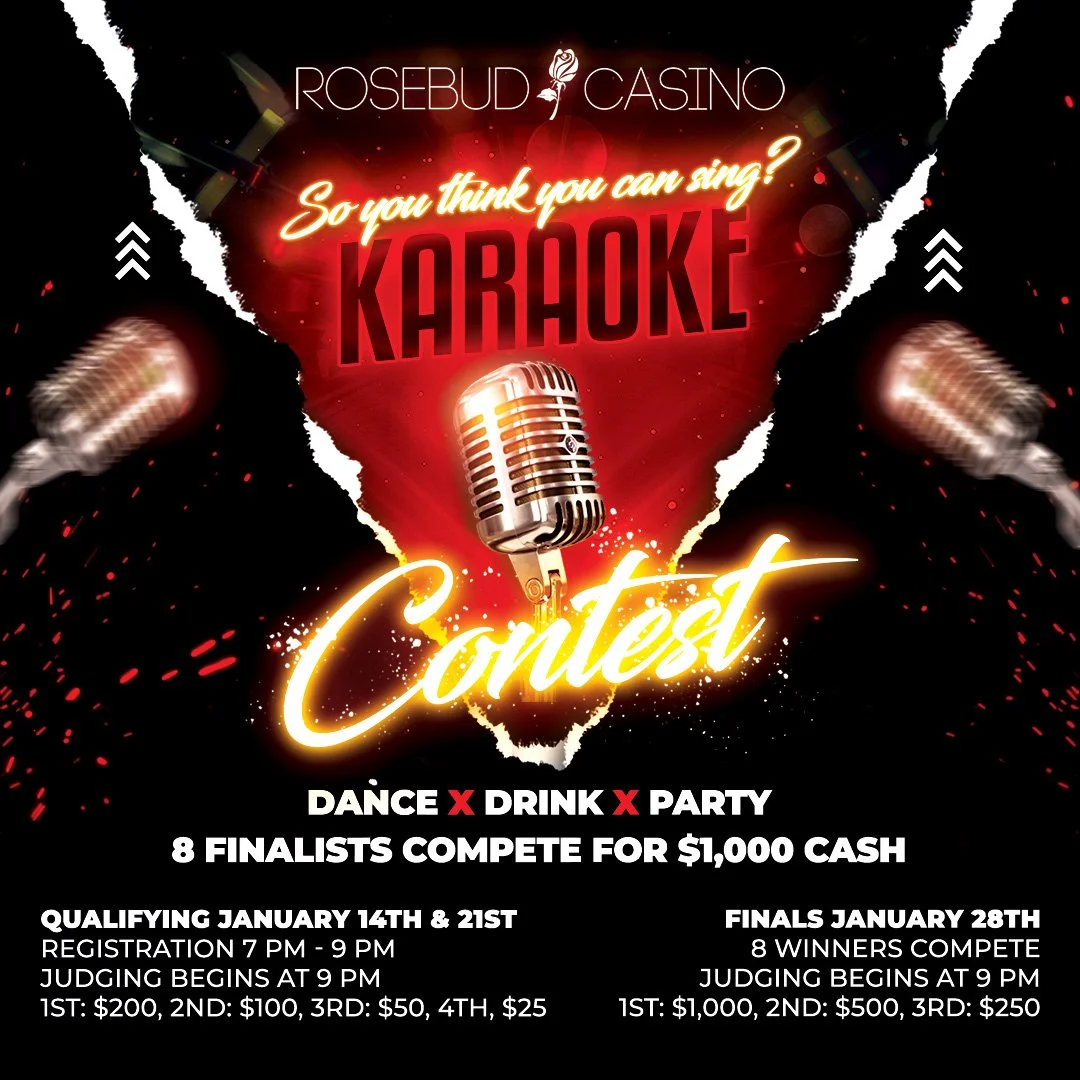 Experience the thrill of Karaoke at the Rosebud Casino! This will be our last qualifying round to find the final four of eight winners competing for the $1,000 first-place cash prize.