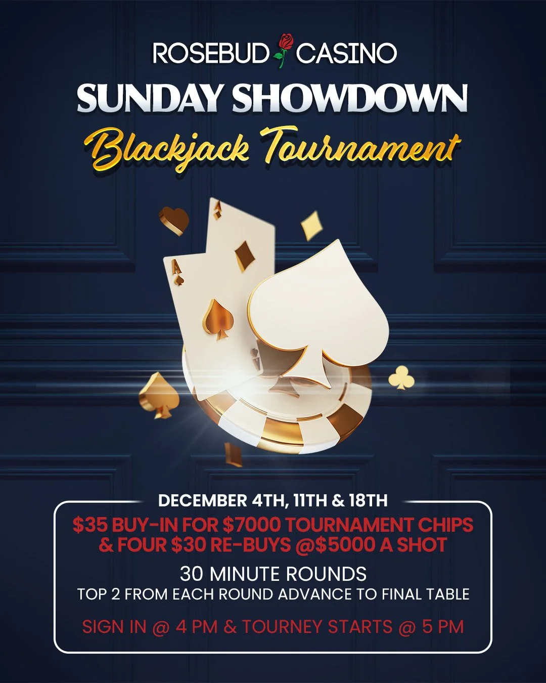 Black Jack Tournament Sunday, December 11th, and 18th.