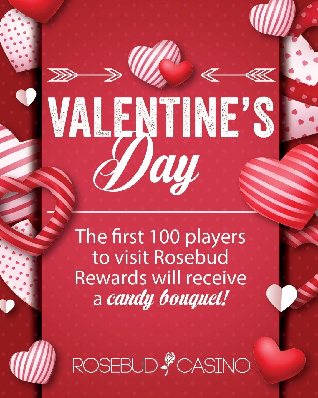 The first 100 players to visit Rosebud Rewards on Valentine’s Day will receive a beautiful candy bouquet!
